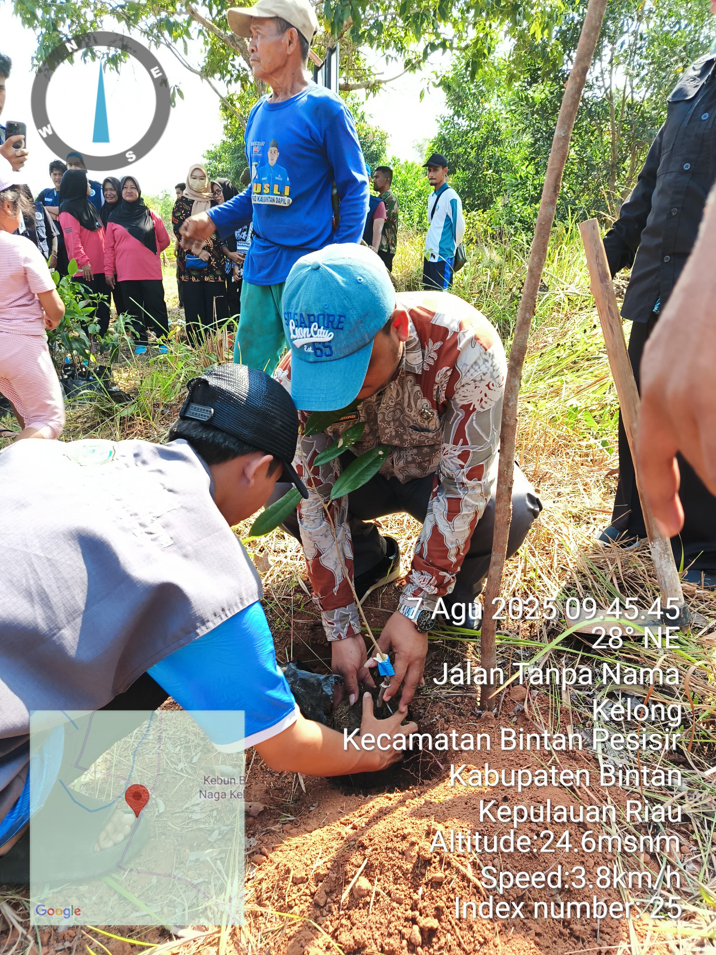 Desa Kelong, 7 Agustus 2025 — Mahasiswa Kuliah Kerja Nyata (KKN) dari Sekolah Tinggi Agama Islam Negeri Sultan Abdurrahman (STAIN SAR) melaksanakan kegiatan penanaman 100 pohon produktif di Desa Kelong, Kecamatan Bintan Pesisir, Kabupaten Bintan. Kegiatan ini merupakan salah satu program kerja unggulan yang bertujuan mendukung penghijauan dan pemberdayaan lahan produktif milik desa.