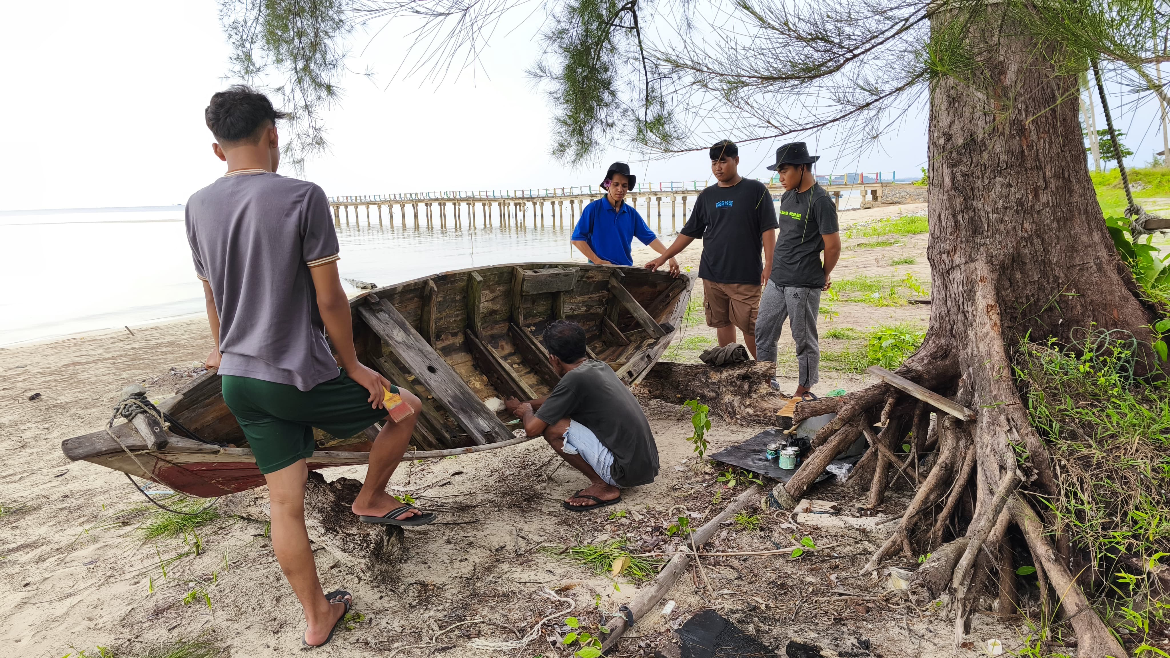 Pengudang, 4 Agustus 2025 – Mahasiswa Kuliah Kerja Nyata (KKN) TS 04 STAIN Sultan Abdurrahman turut serta membantu warga dalam perbaikan perahu di Desa Pengudang. Perahu milik salah satu warga yang biasa digunakan untuk mencari nafkah mengalami kerusakan, sehingga mahasiswa bersama warga bergotong royong melakukan perbaikan.