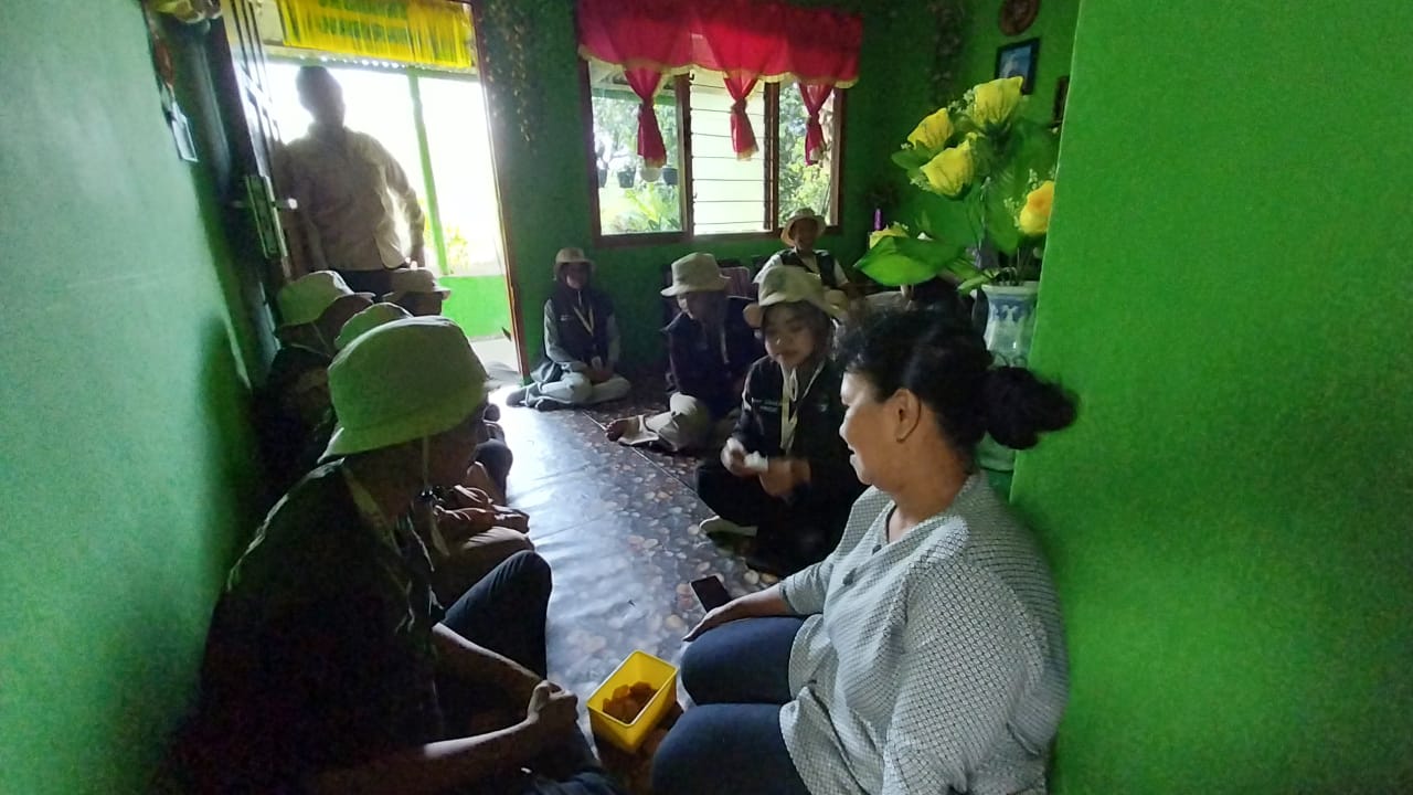 mahasiswa mengunjungi kebun getah milik warga untuk melihat langsung proses