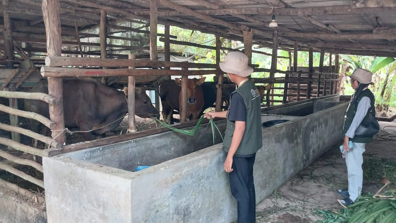 Selain menyapa pelaku UMKM, kegiatan ini juga melibatkan kunjungan ke lahan pertanian dan peternakan warga. Mahasiswa berbincang langsung dengan para petani mengenai musim tanam, jenis tanaman, serta tantangan yang dihadapi seperti kesulitan pupuk dan cuaca yang tidak menentu. Selain itu, mereka juga menyapa peternak yang memelihara kambing dan sapi.