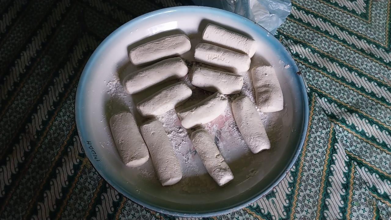 Adonan yang sudah siap kemudian dibentuk memanjang, direbus hingga mengapung, lalu diberi pewarna. Jika setelah dingin warna tampak pudar, adonan disimpan dalam kulkas dan didiamkan semalaman. Esok harinya, adonan dingin tersebut dipotong tipis-tipis seperti keripik ikan, kemudian dijemur di bawah sinar matahari, dan setelah kering, digoreng hingga renyah.