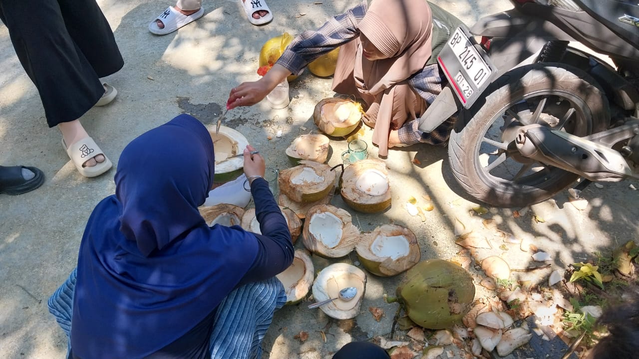 Kegiatan dilanjutkan dengan momen kebersamaan berupa silaturahmi ringan sambil menikmati air kelapa yang dicampur dengan gula merah. Suasana penuh keakraban ini menjadi penutup manis dari kegiatan hari itu.