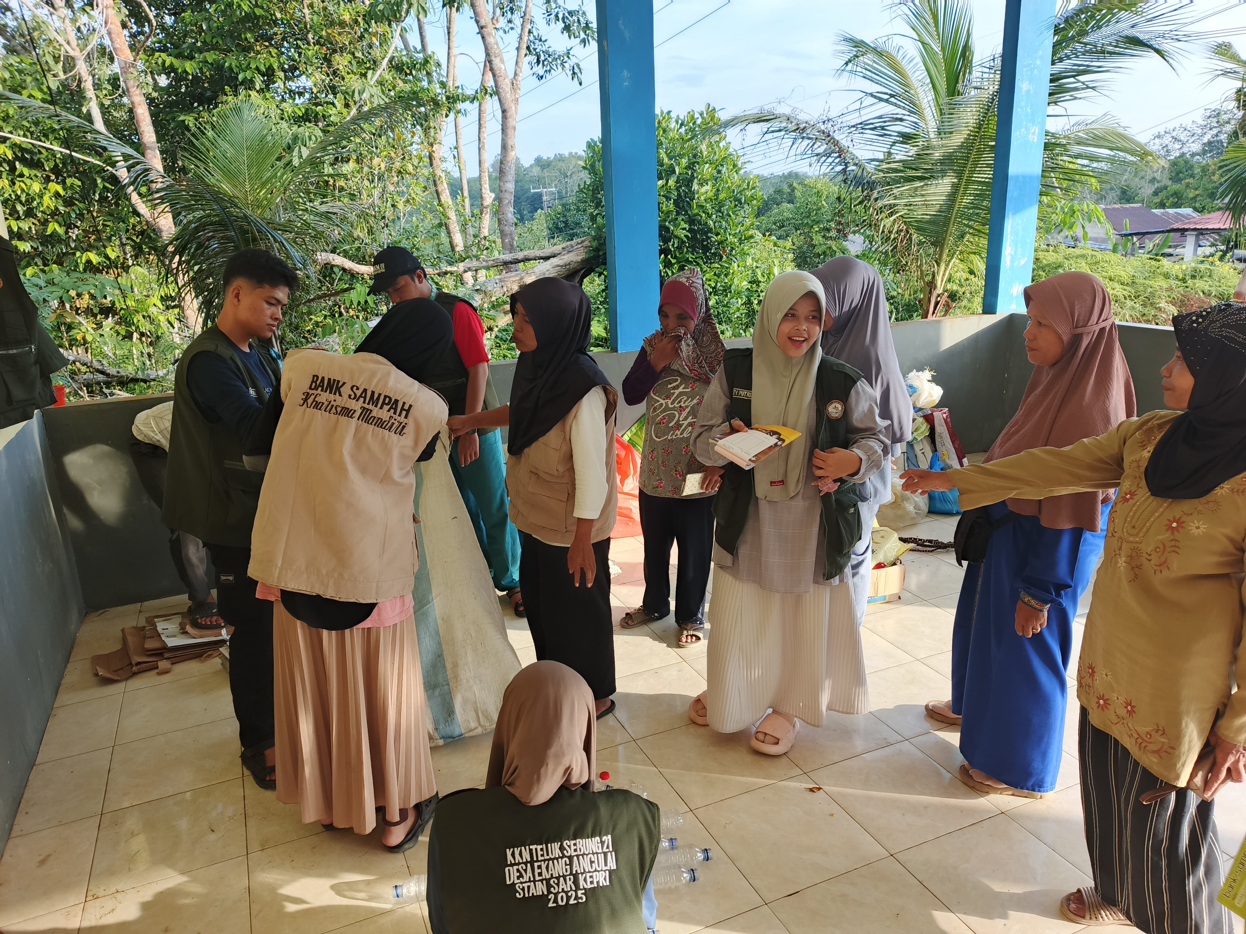 KKN STAIN SAR KEPRI, 09 Agustus 2025 — Program pemberdayaan Bank Sampah yang dijalankan oleh KKN 21 kembali berlanjut dengan pelaksanaan penimbangan dan penabungan kedua kalinya. Kegiatan ini merupakan bagian dari upaya mengoptimalkan perekonomian masyarakat Desa Ekang Anculai dengan memanfaatkan sampah yang sudah dipilah dan ditimbang. Pada kesempatan kali ini, para nasabah lama kembali antusias melakukan penimbangan dan penabungan sampah mereka, sementara pendataan nasabah baru juga terus berjalan dengan baik sebagai bentuk partisipasi yang semakin luas dalam program ini.