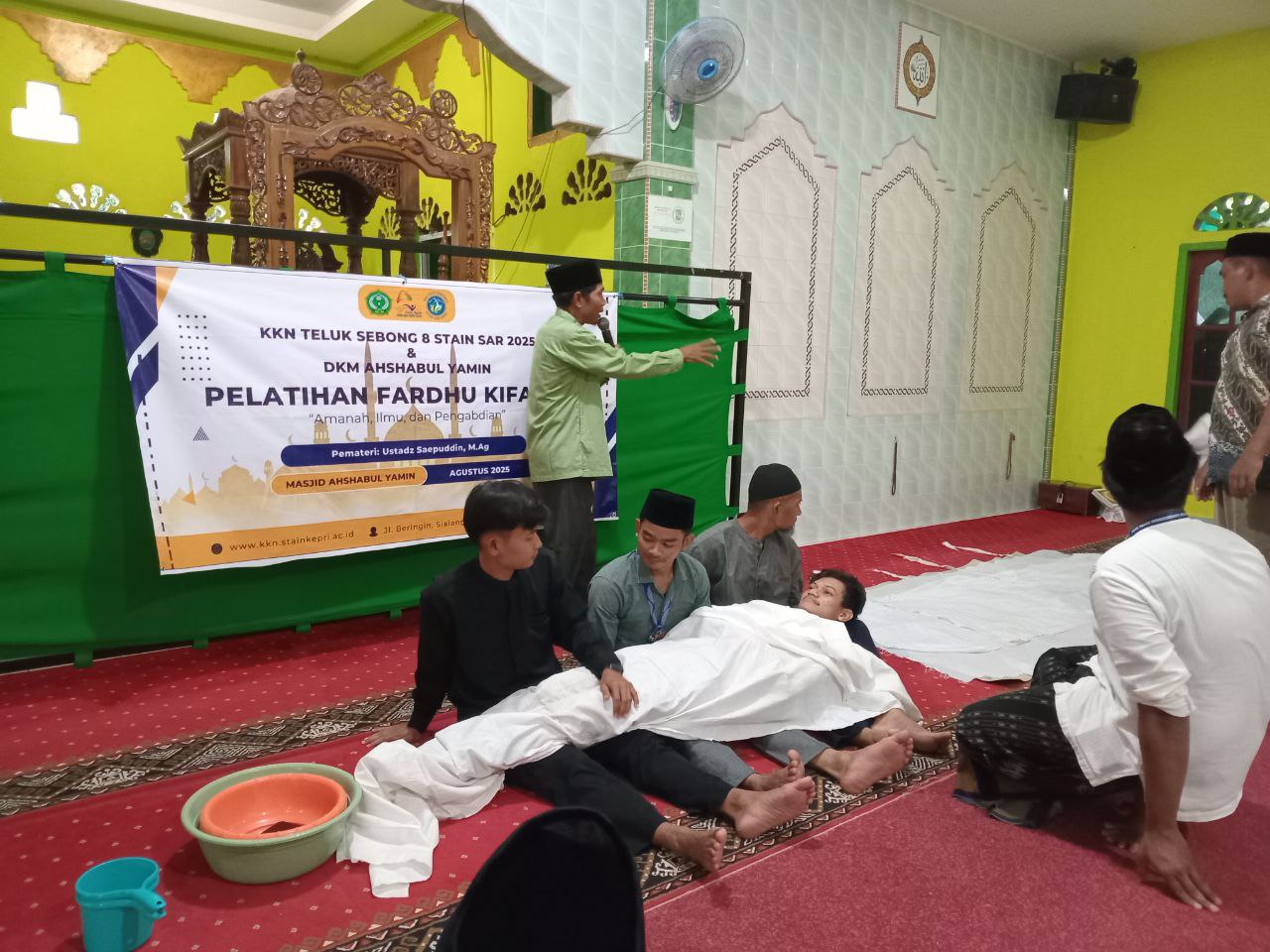 Kampung Sialang, 12 Agustus 2025 – Sebagai wujud kepedulian terhadap peningkatan pengetahuan dan keterampilan masyarakat dalam mengamalkan ajaran Islam, Mahasiswa Kuliah Kerja Nyata (KKN) Teluk Sebong 8 berkolaborasi dengan Dewan Kemakmuran Masjid (DKM) Ahshabul Yamin menggelar Pelatihan Fardhu Kifayah. Kegiatan ini dilaksanakan di Masjid Ahshabul Yamin, Kampung Sialang RT 07 RW 04.