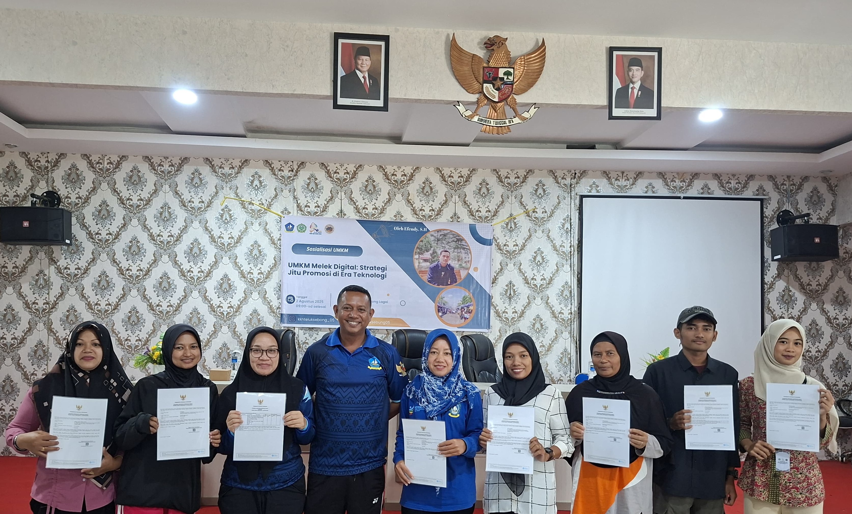 Selain penyampaian materi, kegiatan ini juga dirangkaikan dengan pembagian Nomor Induk Berusaha (NIB) yang telah dicetak sebelumnya oleh mahasiswa untuk para pelaku UMKM. NIB tersebut merupakan hasil dari pendampingan mahasiswa KKN yang sebelumnya telah mengunjungi langsung para UMKM di desa untuk membantu proses pendaftaran dan pengurusan secara gratis.